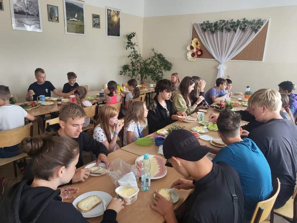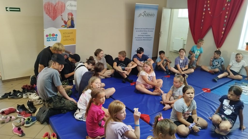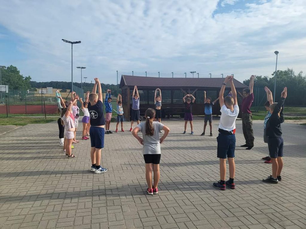 Następnego dnia rano czekała nas rozgrzewka przygotowana przez harcerzy oraz pyszne śniadanie, które dało nam energię na cały dzień. Po posprzątaniu świetlicy wszyscy spotkaliśmy się na uroczystym zakończeniu, gdzie każdy z uczestników otrzymał małą niespodziankę. Nie mogło oczywiście zabraknąć wspólnego zdjęcia.