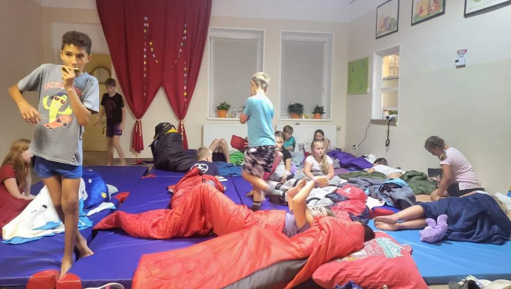W drodze powrotnej rozegraliśmy emocjonującą grę terenową, którą dla nas przygotowali harcerze. Po zakończonej zabawie czekało na nas wieczorne kino pod gwiazdami, a radość dzieci była nie do opisania. Spanie na materacach obok kolegów i koleżanek okazało się prawdziwą atrakcją.